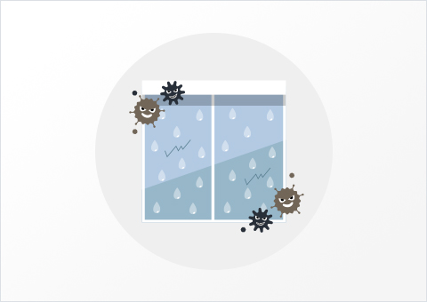 結露はそのままにしておくと、カビやダニ、シミ発生の原因に。カビ・ダニは人間のアレルギーの原因にもなります。